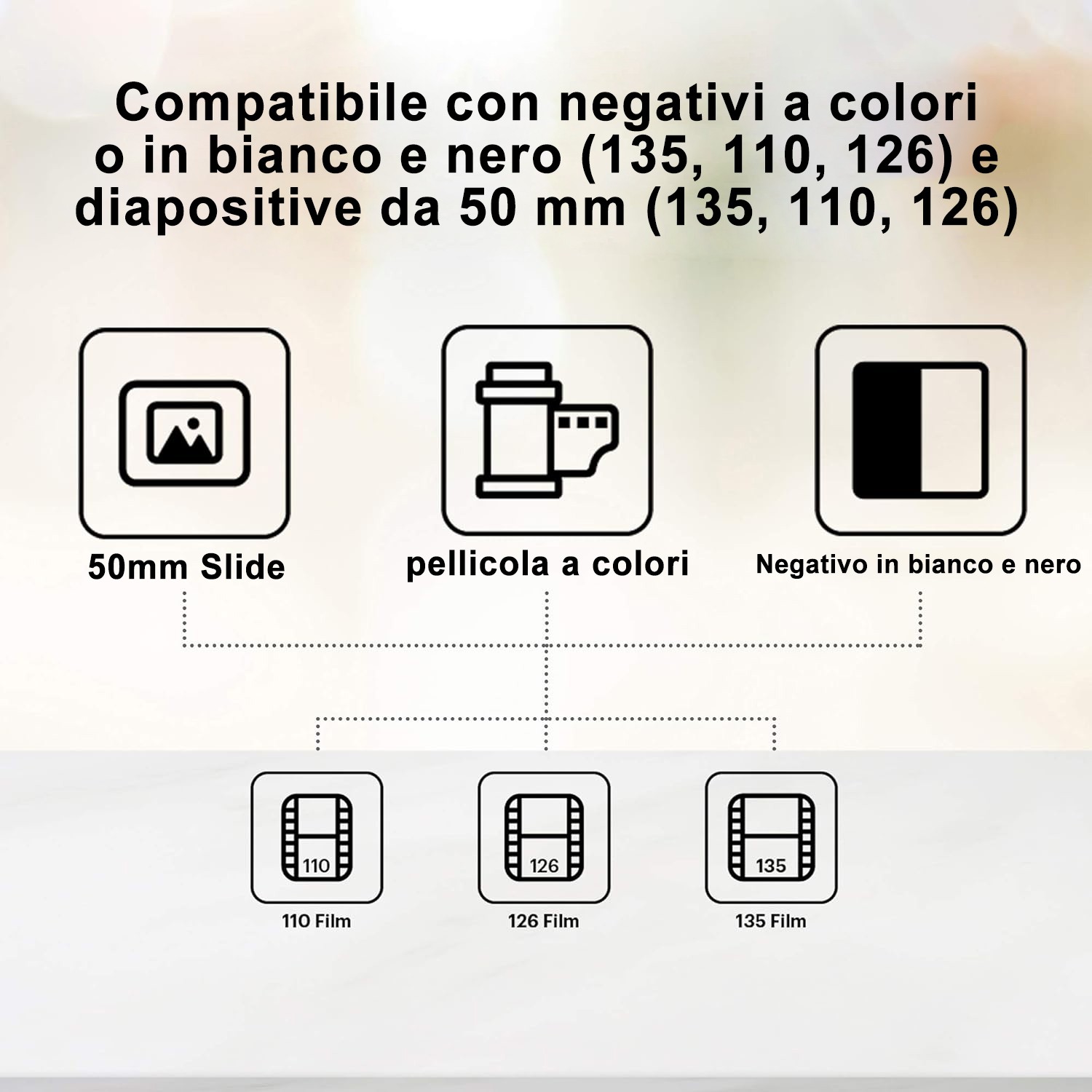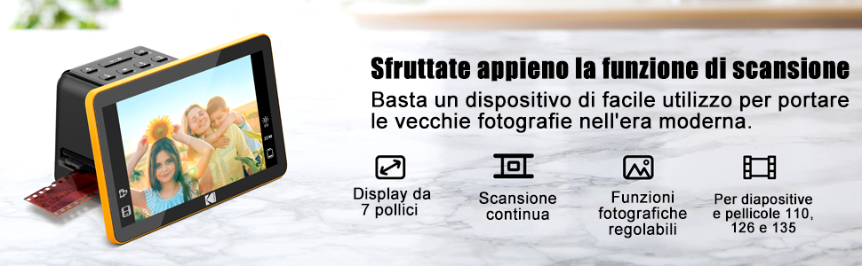 Kodak Slide N SCAN RODFS50 è uno scanner digitale per pellicole progettato per convertire pellicole e diapositive in formato digitale, per facilitarne l'archiviazione e la condivisione.